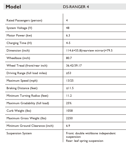 2023 Evolution D5 Golf Cart Specifications