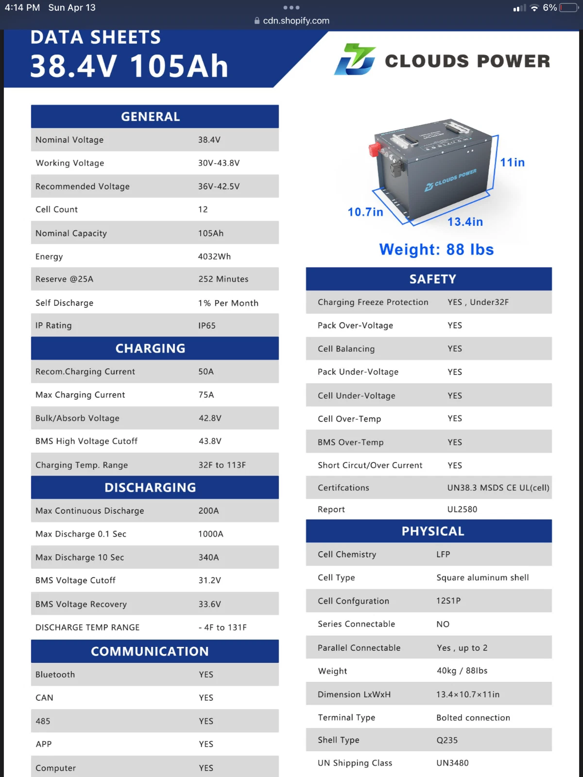 • Norminal Capacity: 105 Ah